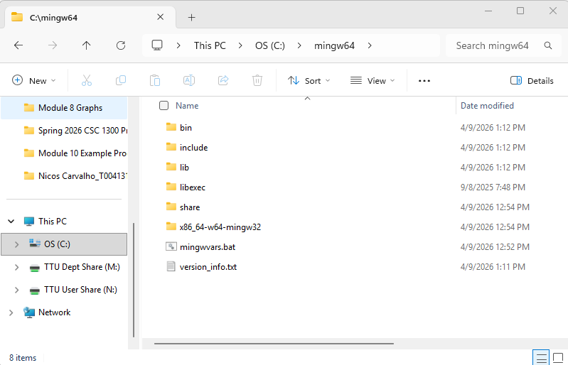 - Go to your File Explorer and go to This PC and then C: drive and then mingw64 and then bin. Then, click in the white space beside the file directory to highlight the path.